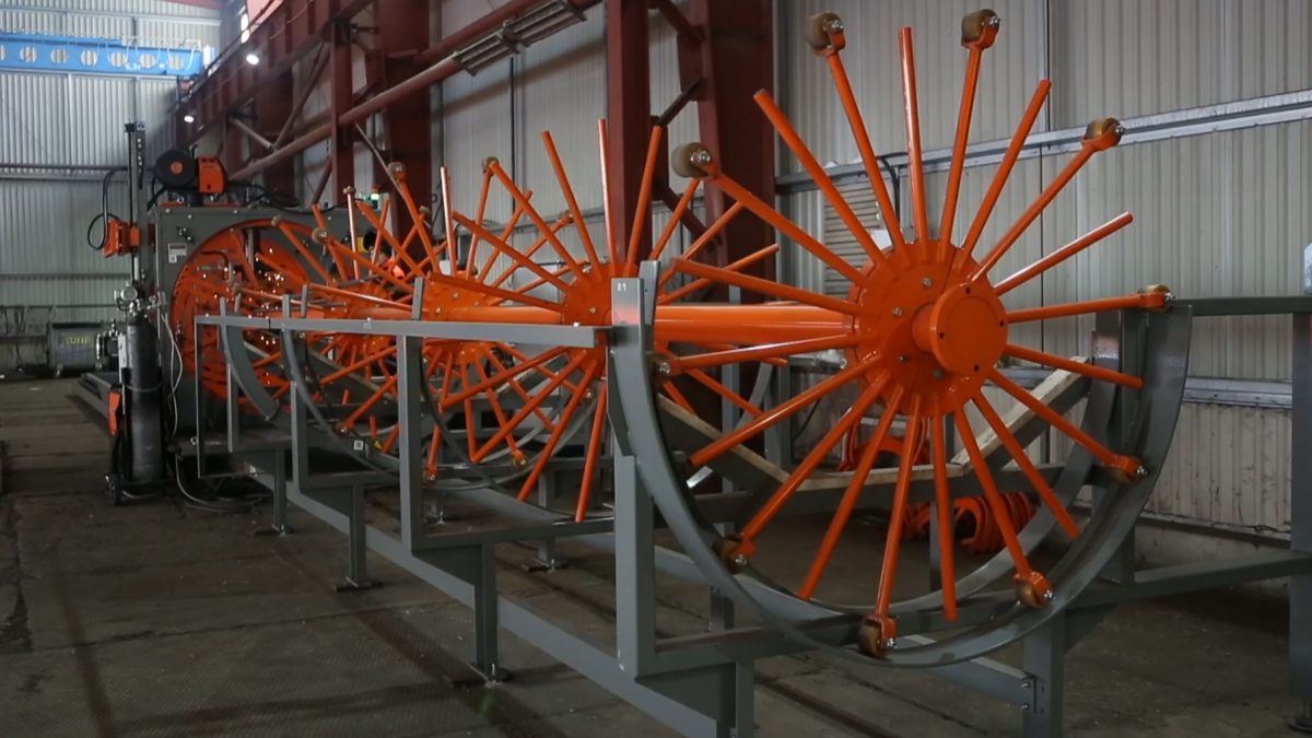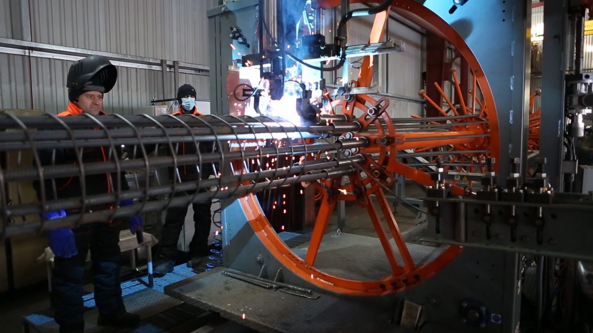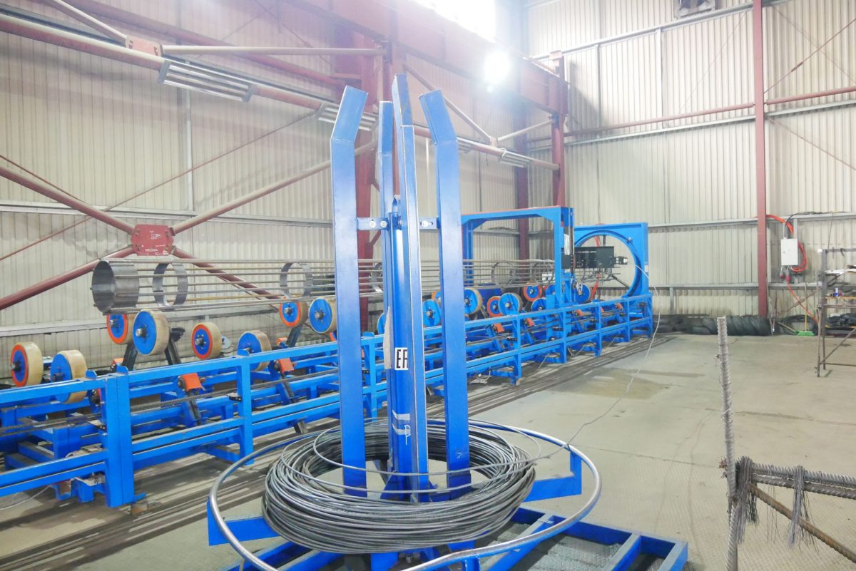 Итальянская линия позволяет изготавливать продукцию с диаметром от 200 до 1600 мм в автоматическом режиме со сварочными соединениями в местах пересечения спирали с рабочей арматурой.