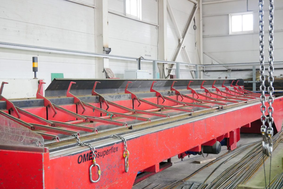 За сутки производит до 10 тонн плоских каркасов из арматуры классов A500C и B500C по запрограммированным параметрам (в том числе и нестандартных размеров по чертежам заказчика). Максимальная длина изделия до 12 м, ширина до 0,8 м, диаметр заготовки до 12 мм.