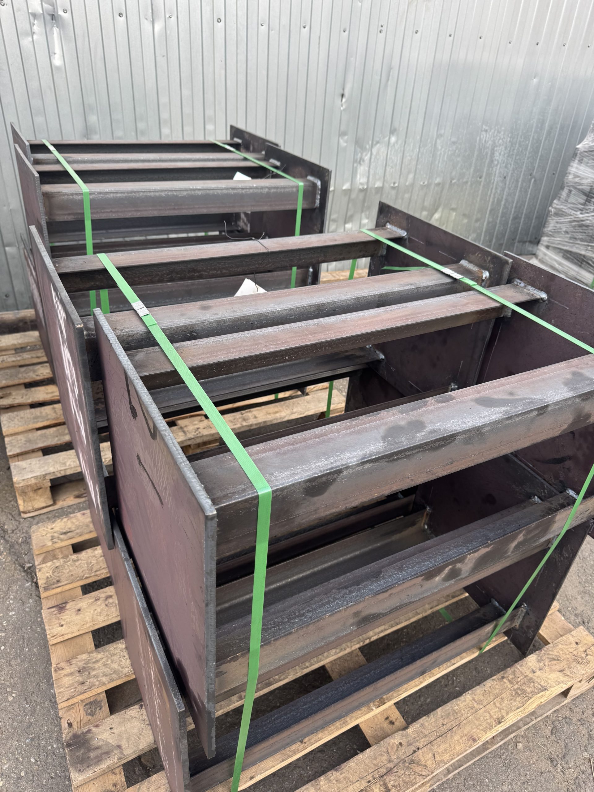 Основным материалом для производства этих изделий является сталь. Наибольшее применение находят сплавы 09Г2С и Ст3. Элементы конструкций изготавливаются из листового проката, швеллеров, полос, уголков. Применение стержней арматуры классов А400 и А500С, их количество, диаметр сечения и длина определяются требованиями к готовому изделию. Если ожидается, что в процессе эксплуатации конструкция будет подвергаться воздействию атмосферных факторов, все ее элементы проходят антикоррозионную обработку.